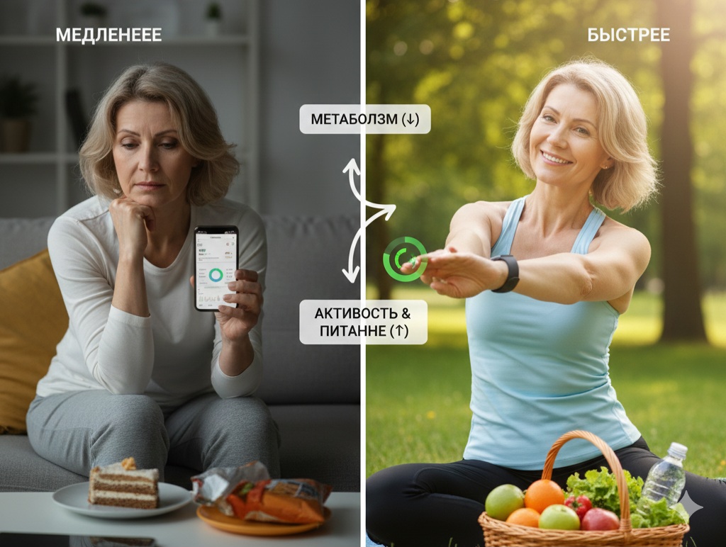 После 50 лет похудение действительно идёт медленнее. Но если уменьшить сахар, добавить белок, ходьбу и нормальный сон — организм снова запускает жиросжигание.